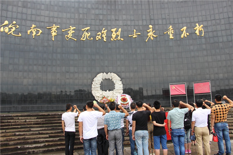 7月2日上午一早,黃山美澳公司總經(jīng)理胡少鵬、黨支部書記江成森帶領(lǐng)美澳公司全體黨員,赴宣城市涇縣新四軍軍部舊址紀(jì)念館,進(jìn)行參觀和學(xué)習(xí)教育,緬懷新四軍烈士的英勇事跡,并為在皖南事變中的死難將士們獻(xiàn)上了花圈。7月的氣候,時雨時晴,公司全體黨員冒著綿綿細(xì)雨,在皖南事變死難烈士陵墓前認(rèn)真開展“新黨員入黨宣誓”學(xué)習(xí)教育活動,并帶領(lǐng)公司全體黨員學(xué)黨章、學(xué)習(xí)總書記系列講話,教導(dǎo)大家如何做一名合格的共產(chǎn)黨員。