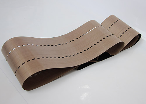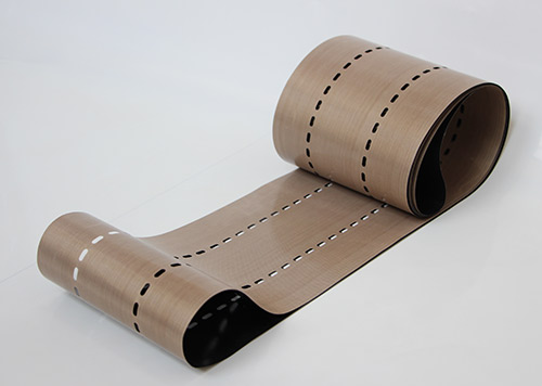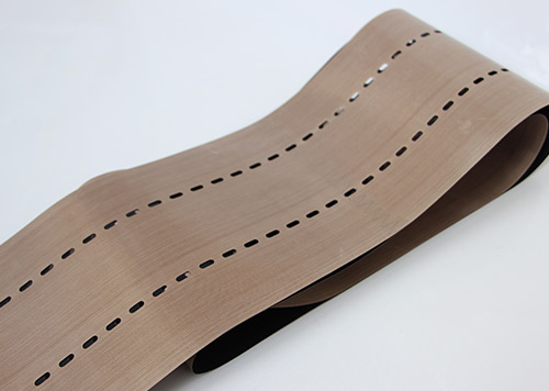 串焊機打孔特氟龍輸送帶采用高強度玻璃纖維紗或凱芙拉(芳綸)經(jīng)圓織設備編織筒狀織物,采用工藝技術涂覆特氟龍樹脂(PTFE)制成的。它克服以往輸送帶接口連接處易斷裂的現(xiàn)象。連接處周長不等而造成走行穩(wěn)定性差、跑偏現(xiàn)象。無縫皮帶運轉(zhuǎn)壽命比任何接法的特氟龍輸送帶壽命都要長3倍以上。