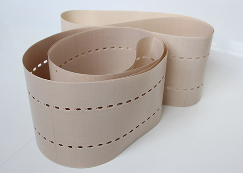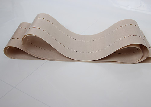 美澳串焊機(jī)皮帶采用高強(qiáng)度玻璃纖維紗或凱芙拉(芳綸)經(jīng)圓織設(shè)備編織筒狀織物,采用工藝技術(shù)涂覆特氟龍樹(shù)脂(PTFE)制成的。它克服以往輸送帶接口連接處易斷裂的現(xiàn)象。連接處周長(zhǎng)不等而造成走行穩(wěn)定性差、跑偏現(xiàn)象。無(wú)縫皮帶運(yùn)轉(zhuǎn)壽命比任何接法的特氟龍輸送帶壽命都要長(zhǎng)3倍以上。