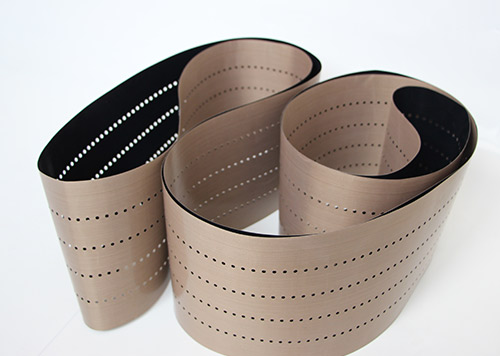 串焊機打孔特氟龍輸送帶采用高強度玻璃纖維紗或凱芙拉(芳綸)經(jīng)圓織設(shè)備編織筒狀織物,采用工藝技術(shù)涂覆特氟龍樹脂(PTFE)制成的。它克服以往輸送帶接口連接處易斷裂的現(xiàn)象。連接處周長不等而造成走行穩(wěn)定性差、跑偏現(xiàn)象。無縫皮帶運轉(zhuǎn)壽命比任何接法的特氟龍輸送帶壽命都要長3倍以上。