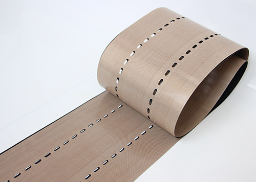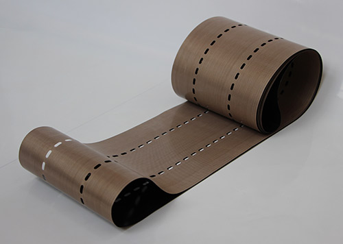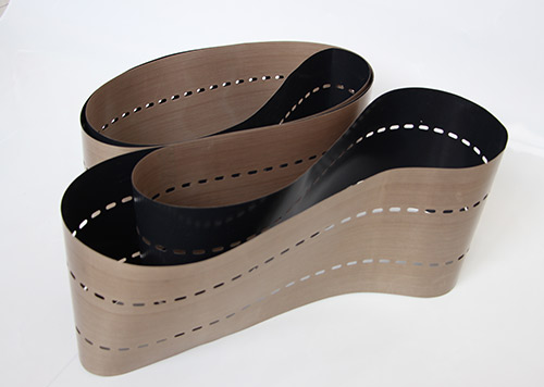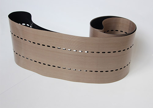 串焊機打孔特氟龍輸送帶采用高強度玻璃纖維紗或凱芙拉(芳綸)經(jīng)圓織設備編織筒狀織物,采用工藝技術涂覆特氟龍樹脂(PTFE)制成的。它克服以往輸送帶接口連接處易斷裂的現(xiàn)象。連接處周長不等而造成走行穩(wěn)定性差、跑偏現(xiàn)象。無縫皮帶運轉(zhuǎn)壽命比任何接法的特氟龍輸送帶壽命都要長3倍以上。